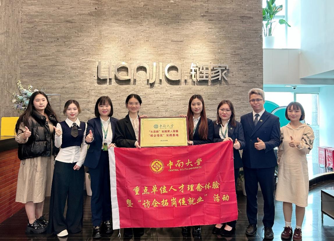 为进一步促进学生高质量充分就业,推动校企合作走深走实,11月13日上午,yl23455永利官网分团委书记、就业专干梁慧,学院2025届毕业生代表和本科生、研究生学生干部代表一行前往上海链家房地产经纪有限公司参观考察、座谈交流,体验企业的人才理念。上海链家人力资源中心招聘经理汪维,校园招聘经理夏媛媛,在司中南大学校友代表熊国君、杨莹莹参与活动。院企双方就院企协同、供需对接、就业实习等方面进行深度交流,续签就业实习实践基地合作协议,举行“校企培优”实践基地授牌仪式。