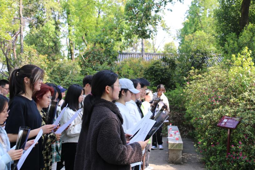 之后,师生们精神抖擞,迈着矫健的步伐,一路欢歌笑语,向岳麓山顶进发。在享受山上美丽风光的同时,大家在沿途中寻找合适的自然物补充自己的专属“春日调色盘”,感受踏青寻春的乐趣。最终大家抵达山顶电视塔打卡点并完成终点合影。