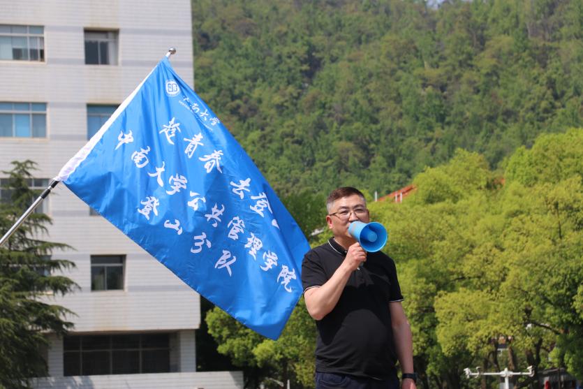 活动在学院党委副书记耿贵斌的动员讲话中拉开帷幕。耿书记强调,新时代青年应当以革命先烈精神为指引,在实际行动中践行爱国主义精神。他也提醒大家注意登山安全问题,号召大家在踏春之时放松身心,积极登山强身健体。随后,大家在升旗台前进行起点打卡并合影留念。