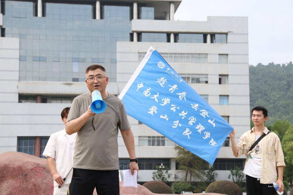 集合完毕后,耿贵斌副书记在校本部升旗台前进行动员讲话。他对参与登山活动的学子们致以亲切的问候,号召同学们以体强身,勇做青春奋进的公管人;以体明智,勇做科研攀登的公管人;以体铸魂,勇做强国担当的公管人。最后特别提醒同学们以安全为先,并预祝本次登山活动圆满成功。