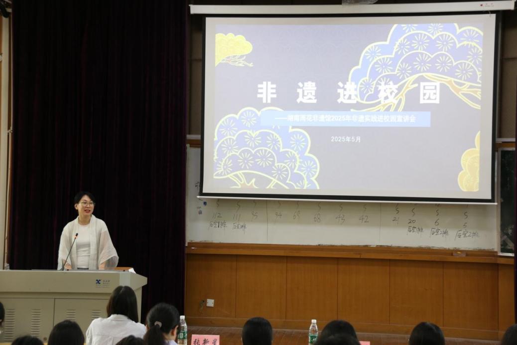 活动伊始,彭老师以深入浅出的语言与精彩纷呈的视频资料,揭开了非物质文化遗产的多元面貌。她强调,非遗并非遥不可及的历史符号,而是融于生活肌理的鲜活存在——无论是竞技中的传统射箭、巧手下的妙剪生花、舌尖上的长沙臭豆腐,还是承载民族记忆的岁时节令,无一不是非遗瑰宝。彭老师的生动讲解,打破了同学们对非遗的刻板印象,让古老智慧在年轻一代心中重新焕发光彩。