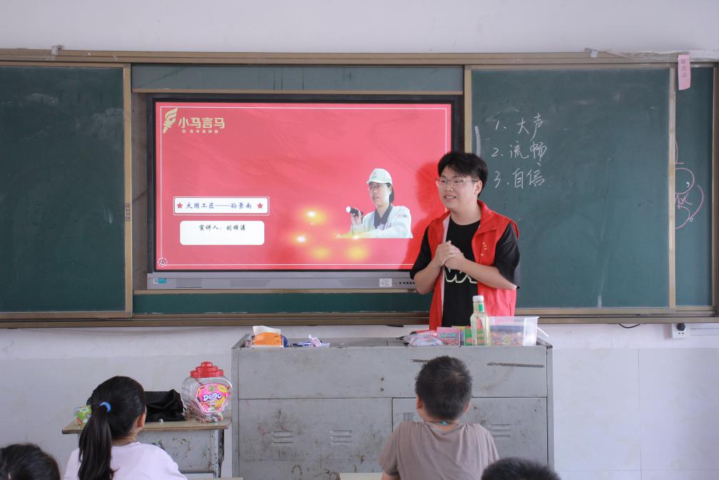 抵达学校后,团队成员与孩子们在略显拘谨的氛围中相识,队员们首先进行了热情洋溢的自我介绍。轮到孩子们时,许多小脸庞上写满了紧张与不安,他们走上讲台,眼神躲闪,自我介绍简短而羞涩。这初次的声音交流,正是许多乡村孩子社交恐惧的直观体现,也成为了支教团队首日课程设计的起点。
