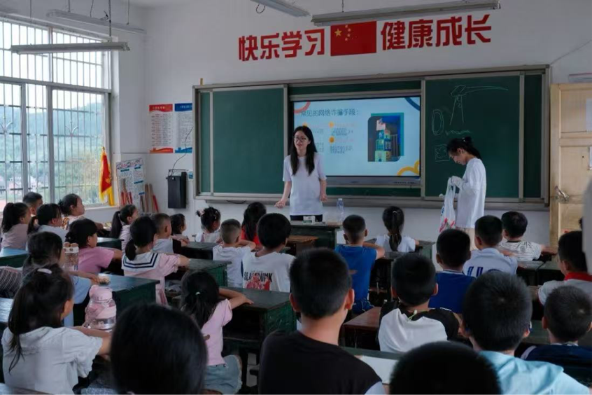 基于调研情况,实践团为潮水铺村儿童量身打造了“掌上寻光”网络数智夏令营,开设了网络素质教育、人工智能启蒙等课程。在网络安全课上,志愿者通过“反诈小侦探”情景剧,教授孩子们识别网络诈骗信息;在资源运用课中,手把手指导孩子们使用国家中小学智慧教育平台;心理教育环节则通过“网上心事分享圈”,引导孩子们区分虚拟互动与现实友谊。实践团成员黄芮介绍:“我们希望通过丰富的课程,帮助孩子们发现手机之外的更多可能。”后续团队还将联合村小学、村委会策划文体活动,如篮球培训、阅读会等,为孩子们创造更多线下社交与活动的机会。