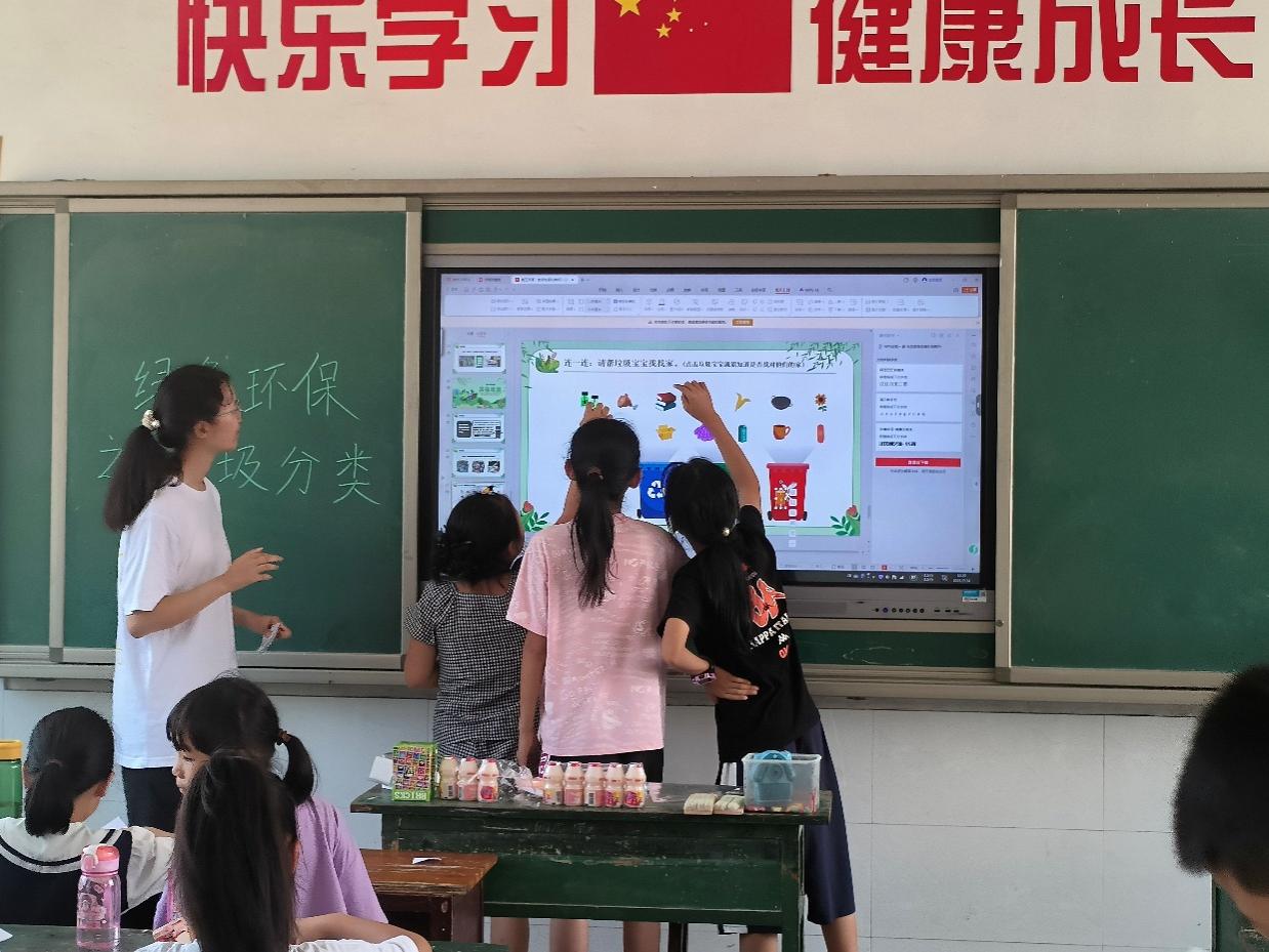 在垃圾分类教堂上,孩子们化身“环保小卫士”,争先恐后地展示刚学习到的分类本领。多媒体屏幕上,红、蓝、绿、黄四个彩衣垃圾桶巍然屹立,等待争先上台的“环保小卫士”们的挑战。“我知道!废电池是有害垃圾,要放进红色垃圾桶!”“烟头是其他垃圾!要放入黑色垃圾桶!”在孩子们的积极互动中,一点一滴的环保知识得到积累,这些正是促使孩子们改变习惯,使乡村街头巷尾恢复整洁的关键因素。