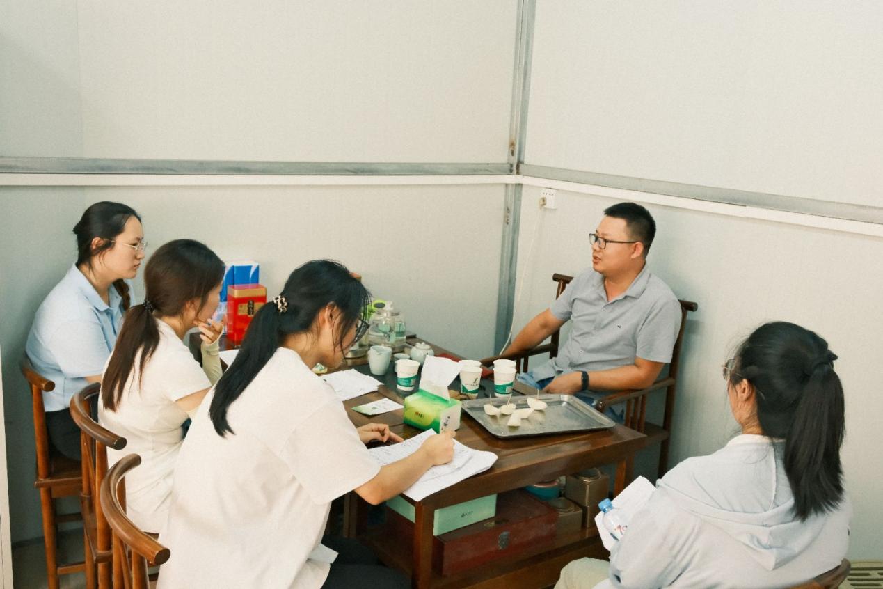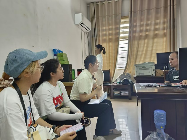 9日上午,团队先后与县农业农村局、网信办等部门围桌对话,一场“政府—青年—产业”的接力式访谈让调研迅速升温。产业办负责人坦言,虽然农业产业发展势头较好,但仍存在冷链仓储缺口大、政策补贴农户知晓率较低的问题。同时,网信办负责人阐述了部门职责、网信与乡村振兴的融合路径,以及文化宣传、网络安全教育等工作;社会工作部方面,团队了解到基层治理与政权建设、“两企三新”党建工作及志愿者服务的推进模式;林业局负责人则就油茶产业现状、设施、短板及规划等作了深入介绍。