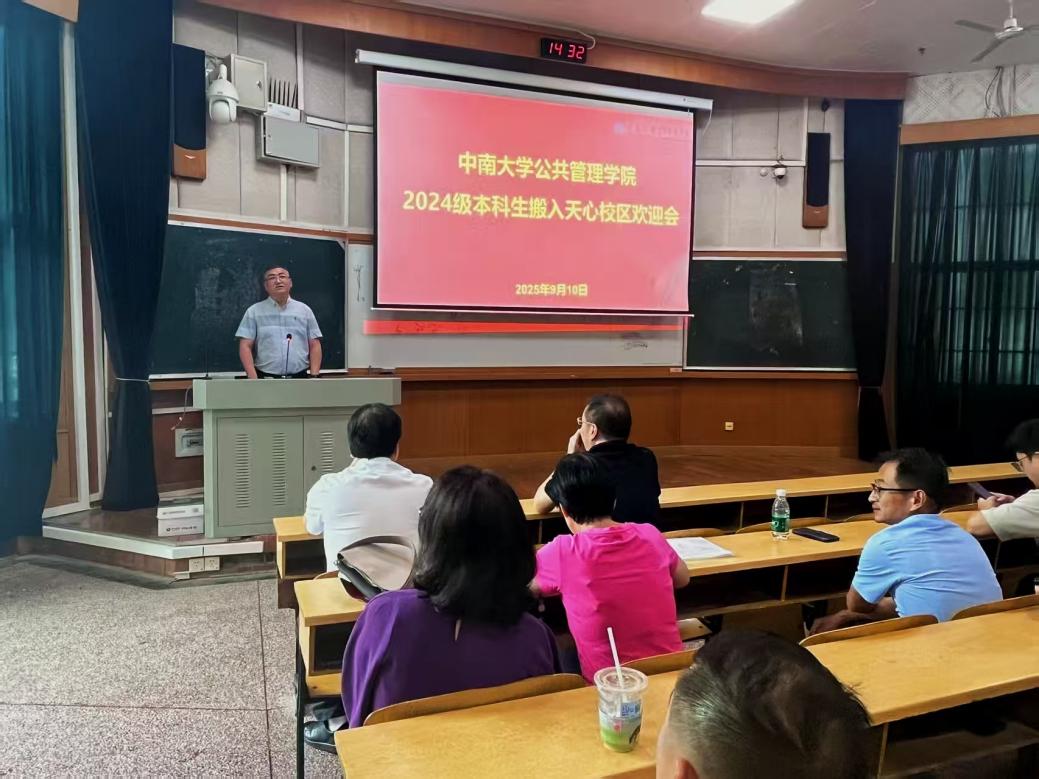 2025年9月10日下午2时,yl23455永利官网在天心校区世纪楼D座101举行了2024级本科生搬入天心校区欢迎会。院党委书记杨旭东、院长许源源、副书记耿贵斌、社会学系主任彭远春、社会学系副主任米莉、公共管理系副主任杨宇泽、各系教师代表、2024级本科生班导师、辅导员和全体2024级本科生参加。欢迎会由学院党委副书记耿贵斌主持。