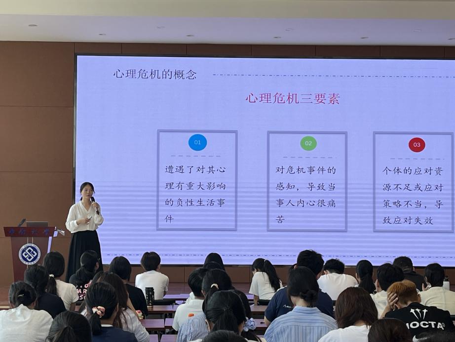 为引导新生尽快适应大学生活,加强同辈互助的认识和力量,9月28日上午9时,我院于潇湘校区毓秀楼238举行开展以“大学生心理危机识别与预防”为主题的新生心理健康教育。院党委副书记耿贵斌出席,2025级全体本科生参加,2025级本科生辅导员梁慧主持。