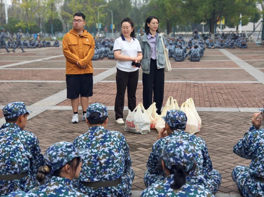 10月15日上午9时,我院社会学系25级新生班导师米莉、罗聪聪前往潇湘校区体育场外17连训练场地看望军训新生,传递学院对新生的支持与关怀。