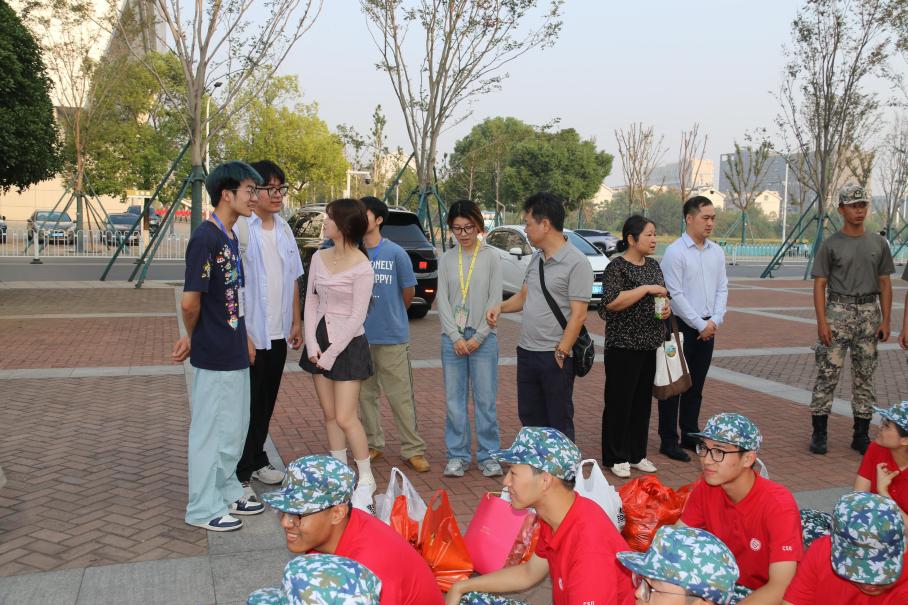 为了解新生训练进展与适应情况,10月12日下午4时,我院公共管理系25级新生班导师欧阳万福、董文琪、谢刚一行前往潇湘校区体育场外17连训练场地,亲切看望并慰问军训新生,为大家送去学院关怀与鼓励。