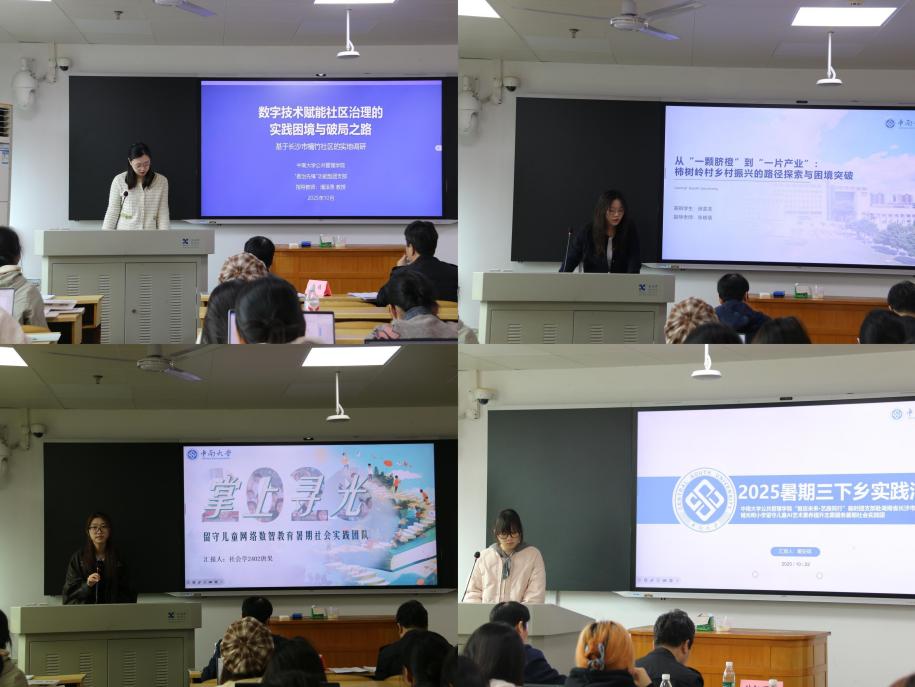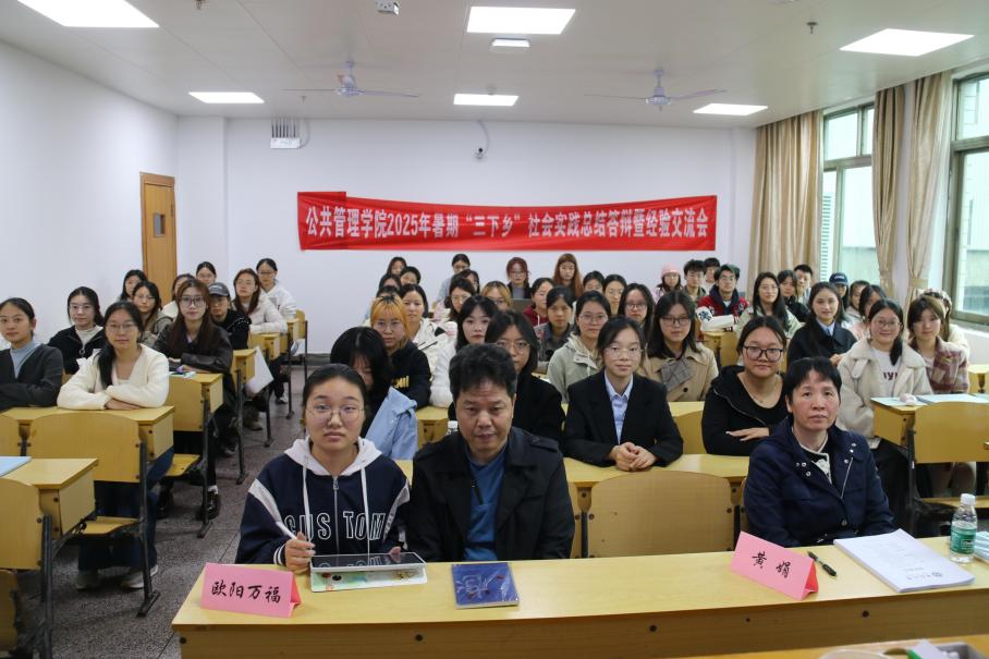 为深入推进实践育人,总结2025年暑期“三下乡”社会实践,10月22日下午2时我院于世纪楼主楼304举办2025年暑期“三下乡”社会实践总结答辩暨经验交流会。此次活动邀请行管系主任欧阳万福老师、社会学系黄娟老师担任专家评审,我院分团委科实部熊妍担任主持人。