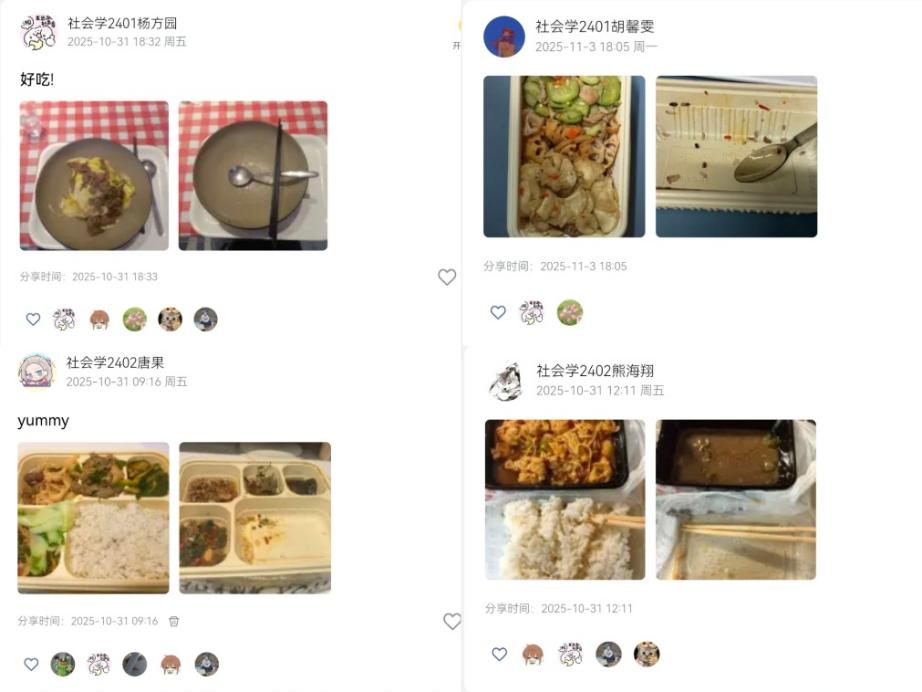 此次“不负好‘食’光,节粮我先行”主题团日活动,通过线上打卡新形式,将节约粮食的理念融入同学们的日常生活,有效提升了大家的节粮惜粮意识。活动不仅增进了社会学2401班与2402班同学之间的友谊,更在实践互动中引导青年学子深刻理解粮食安全的重要性,增强了社会责任感和时代使命感,为培养勤俭节约的校园风尚注入了青春动能。