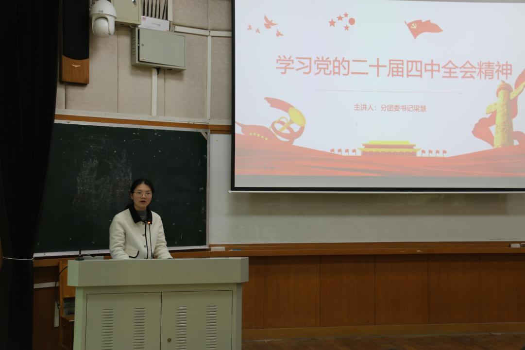 为深入学习贯彻彻党的二十届四中全会精神,引导广大青年学子深刻领会全会内涵与核心要义,我院于11月5日下午2时在世纪楼报D座101教室,开展“学习党的二十届四中全会精神”主题团课。本次主题团课由院分团委书记梁慧主讲,六十余名学生代表参会。