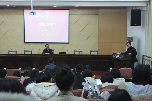 2018年12月5日下午,中南讲堂·名师名家论坛系列讲座之公共管理的精神在升华前楼101报告厅举行。本次讲座的主讲人为中国人民大学yl23455永利官网教授、博导张成福教授。我院姜国俊副院长、刘春湘教授、刘媛副教授、李晓飞副教授、何雷博士及我院公共管理专业研究生、博士生均参加了此次讲座。讲座由我院党委副书记许源源教授主持。