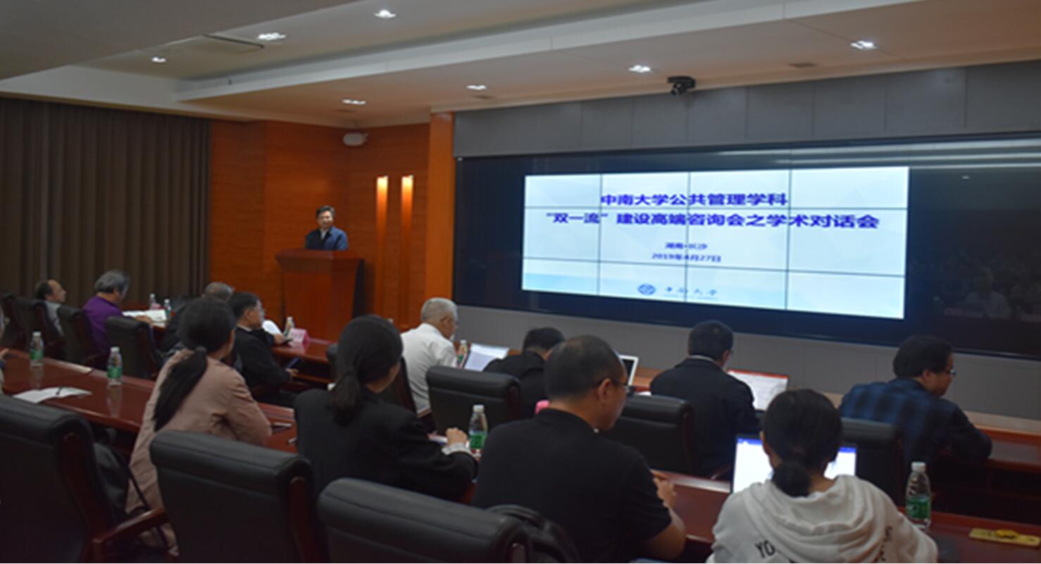公共管理学科于2017年获批公共管理一级学科博士点,为进一步促进学科的“双一流”发展,规范2019年博士生培养方案,2019年4月27日,公共管理学科在中南大学校本部举办了“双一流”建设高端咨询会。