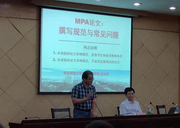 9月17日下午,由中南大学人事处、科学研究部主办,我院承办的中南讲堂·名师名家论坛系列讲座之“MPA论文撰写规范与常见问题”在升华楼前楼101报告厅举行。华东师范大学yl23455永利官网教授、博士生导师吴志华教授应邀担任本次论坛的主讲嘉宾。我院博士生、MPA研究生聆听了此次讲座。本次讲座由我院副院长许源源教授主持。