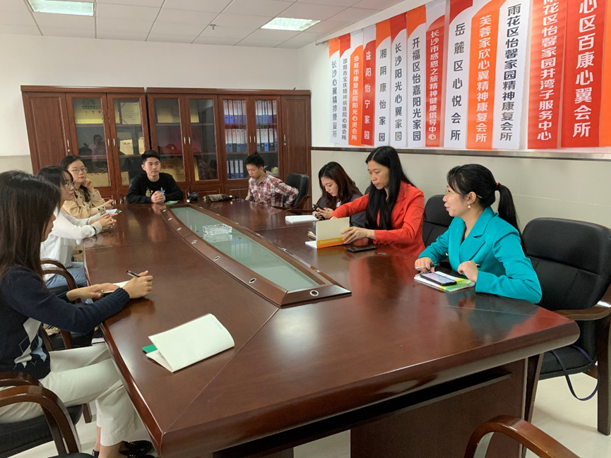 2020年9月27日上午,在中南大学社会学专业校企合作人才培训基地——长沙市第三社会福利院(长沙市第九医院),我院社会学系6名社会工作专业硕士研究生与长沙市第三社会福利院社工部蒋红霞主任、阳光心翼会所罗月红主管进行了初次会面,共同探索校企业合作人才培养模式。