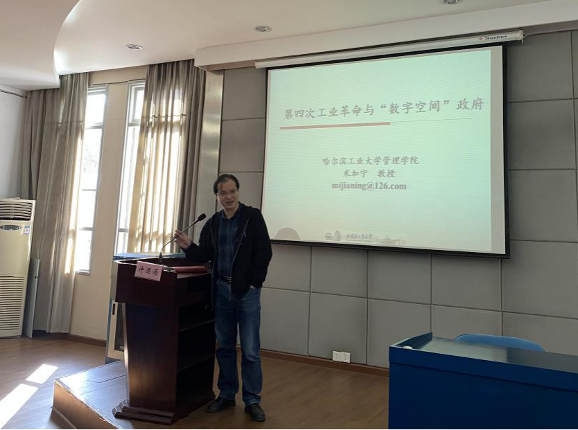 11月10日上午,在学院院楼404教室,由中南大学人事处、科学研究部主办,我院研究生会承办的中南讲堂·名师名家论坛之“第四次工业革命与数字空间政府”讲座顺利举行。哈尔滨工业大学米加宁教授应邀担任本次论坛的主讲嘉宾。学院副院长姜国俊副教授、张桂蓉教授、胡春燕教授、李晓飞副教授、刘芷含副教授、董文琪副教授、博士生及研究生到场聆听,本次讲座由学院院长许源源教授主持。现场气氛热烈,座无虚席。