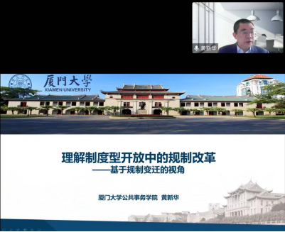 2022年12月12日下午三点,应我院邀请,厦门大学公共事务学院黄新华教授在云端做客中南讲堂·名师名家论坛,开展了以“理解制度型开放中的规制改革”为主题的学术讲座。本次讲座由我院院长许源源教授主持,数百名师生在线上平台参加了此次讲座。