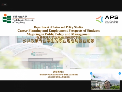 5月8日晚18:00,香港教育大学公共政策及管理硕士课程宣讲会于线上开展。本次活动由我院研究生会联合香港教育大学共同举办,是我院开展的“鸿鹄计划”系列活动第四期,活动由香港教育大学胡智勇博士主讲,我院兼职辅导员韦韩春老师主持。
