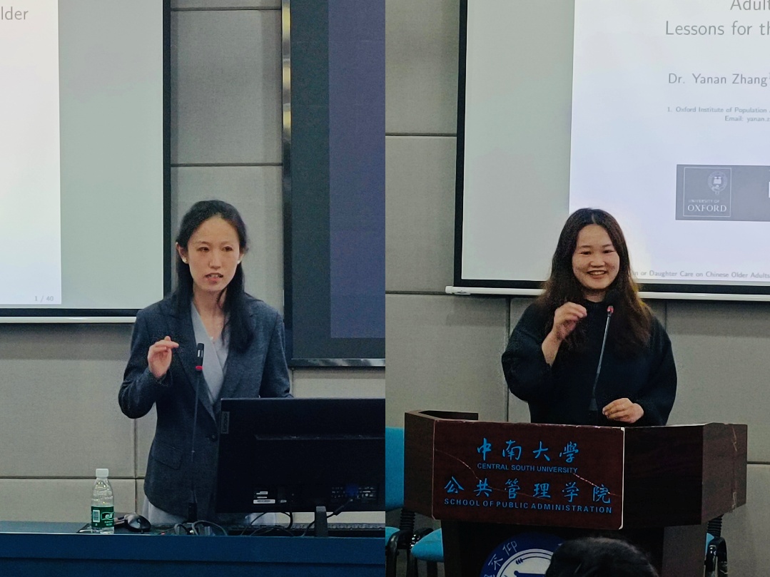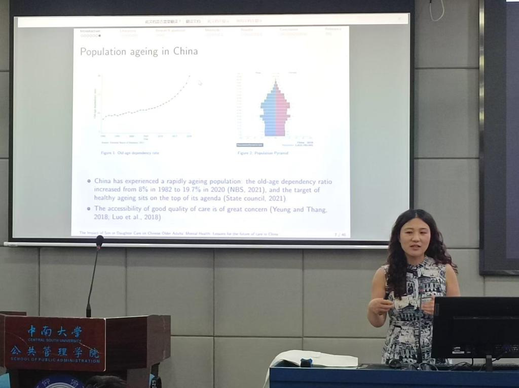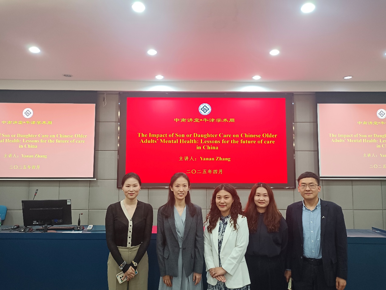 2025年4月24日14:30,中南讲堂·牛津学术周第三场活动在中南大学天心校区yl23455永利官网院楼404报告厅举行,牛津大学人口老龄化研究所高级研究员(Senior Research Fellow)张亚楠受邀进行以“The Impact of Son or Daughter Care on Chinese Older Adults’ Mental Health: Lessons for the future of care in China”为主题的学术讲座。讲座由yl23455永利官网刘芷含副教授主持,吸引了众多师生踊跃参与,现场气氛热烈。