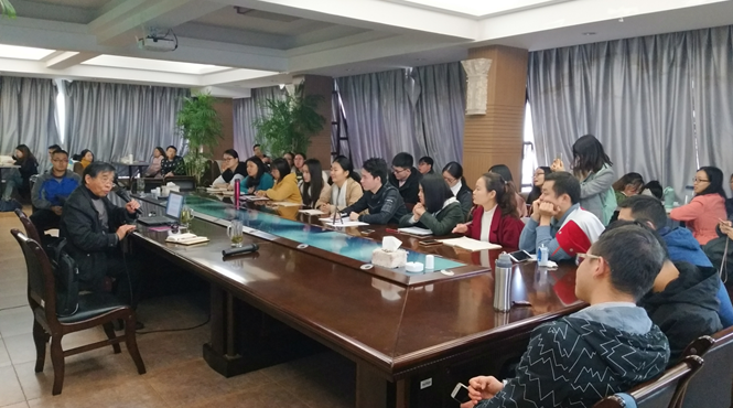 2017年11月17日上午9点至12点,在校本部升华后楼十楼和谐阁,一场关于十九大报告精神的专家与学生对谈会正在热烈举行。主讲专家是著名政治学家、复旦大学国际关系与公共事务学院浦兴祖教授,我院院党委书记刘迪、副院长姜国俊,校党委宣传部副部长吴晓林,以及来自本校、湖南大学和湖南师大的近百名师生参加了对谈会。