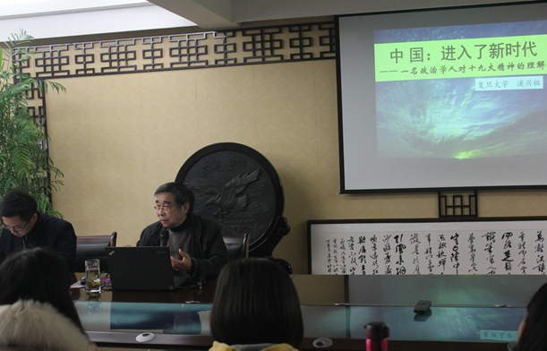 最后,浦兴祖教授分四个部分“宣告进入了新时代”“新时代开启新征程”“新时代加强新党建”“新时代确立新思想”,全面系统、深入浅出地诠释了十九大精神的内在逻辑。他还勉励青年学生一定要不忘初心,牢记使命,在十九大精神的指引下,加倍努力学习,以备毕业后为实现中国梦而做出自己的贡献。