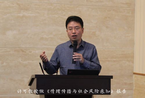 第二阶段为上午主题演讲,由我院潘泽泉教授主持。中国科学院科技战略咨询研究院刘怡君教授发表主题演讲《社会物理学相关理论与案例分析》。刘教授从中国社会物理学奠基人牛文元教授与《社会物理学》丛书出发,系统介绍了社会物理学的脉络、理论、方法和工具;从团队发展历程、社会物理学理论框架、社会物理学研究模式发展历程、社会物理学典型研究案例等方面进行阐述。北京航空航天大学计算机学院许可教授做《情绪传播与社会风险感知》主题演讲。许教授基于大数据研究情绪的传播,提出愤怒是群体性事件的导火索,并构建网络舆情风险评估指数;最后提出“无为而治”的群体智慧空间治理新观点。清华大学李楠副教授做《基于虚拟现实环境下行为实验的建筑人员疏散研究》主题演讲。李教授从微观个体出发,构建群体紧急疏散模型,并基于VR技术进行实验研究,以更加真实的场景模拟求解影响疏散效率的关键核心因素;他还展示了多个VR实验视频。舆情专家齐中祥董事长做了题为《从情绪计算到人心识别——互联网大数据的创新实践》的专题汇报,给大家带来一场基于数据-情绪-人心-算法的精彩演讲;从西方研究与实践,到中国的理论创新,再到选举领域的成功预测案例,展示了其在大数据预测领域的丰富实践。我院吕鹏教授做《国家发展、帝国兴衰与公共安全:社会物理学视角》主题演讲。吕教授提出基于社会物理学视角,认为可以用其解读帝国兴衰进程、国家发展战略与社会公共安全;揭示个体行为(群体行为)与微观粒子(粒子系统)存在规律同一性;采用粒子ABM建模微观行为,为社会科学研究提供新工具。