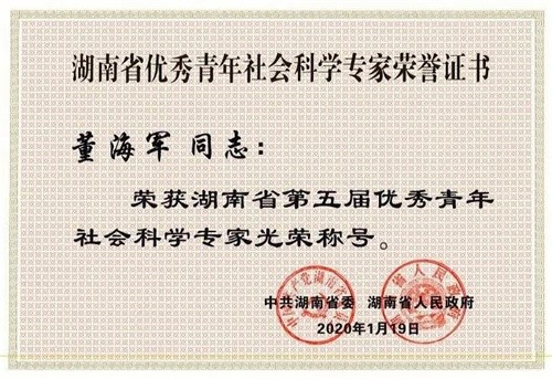 1月19日,湖南省委、省政府发布《关于表彰湖南省第十四届社会科学优秀成果、第七届优秀社会科学专家、第五届优秀青年社会科学专家的通报》。《通报》公示了100项社科优秀成果、5名优秀社科专家、5名优秀青年社科专家表彰名单,其中,我院社会学系董海军教授荣获“湖南省第五届优秀青年社会科学专家”光荣称号。